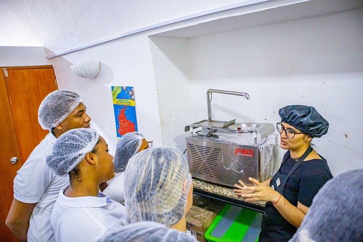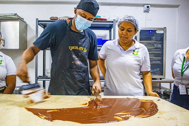 In our Chocolate and Cacao Workshop, we'll use the finest cacao sourced from the 'Montes de María', a region nestled in the Colombian Caribbean. During our experience, you'll explore the diverse textures and aromas of cacao. You'll enjoy the entire creative process, from the bean, and its entire transformation process to the making of cocoa-derived products such as bars, bonbons, and truffles.